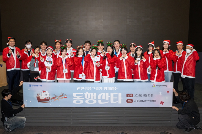 신한금융그룹(회장 진옥동)은 지난 23일 서울 종로구 서울대학교병원에서 서울대학교어린이병원, 아이들과미래재단과 함께 환아들을 위한 ‘동행 산타’ 봉사활동을 진행했다고 24일 밝혔다.