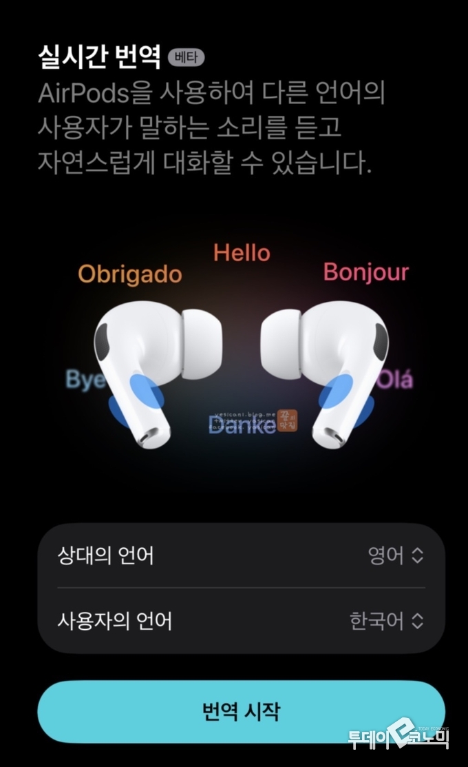 투데이e코노믹 = 유서진 기자 | 애플이 아이폰 일부 앱과 에어팟에 한국어·중국어·일본어 실시간 번역 기능을 추가한다고 6일 밝혔다.