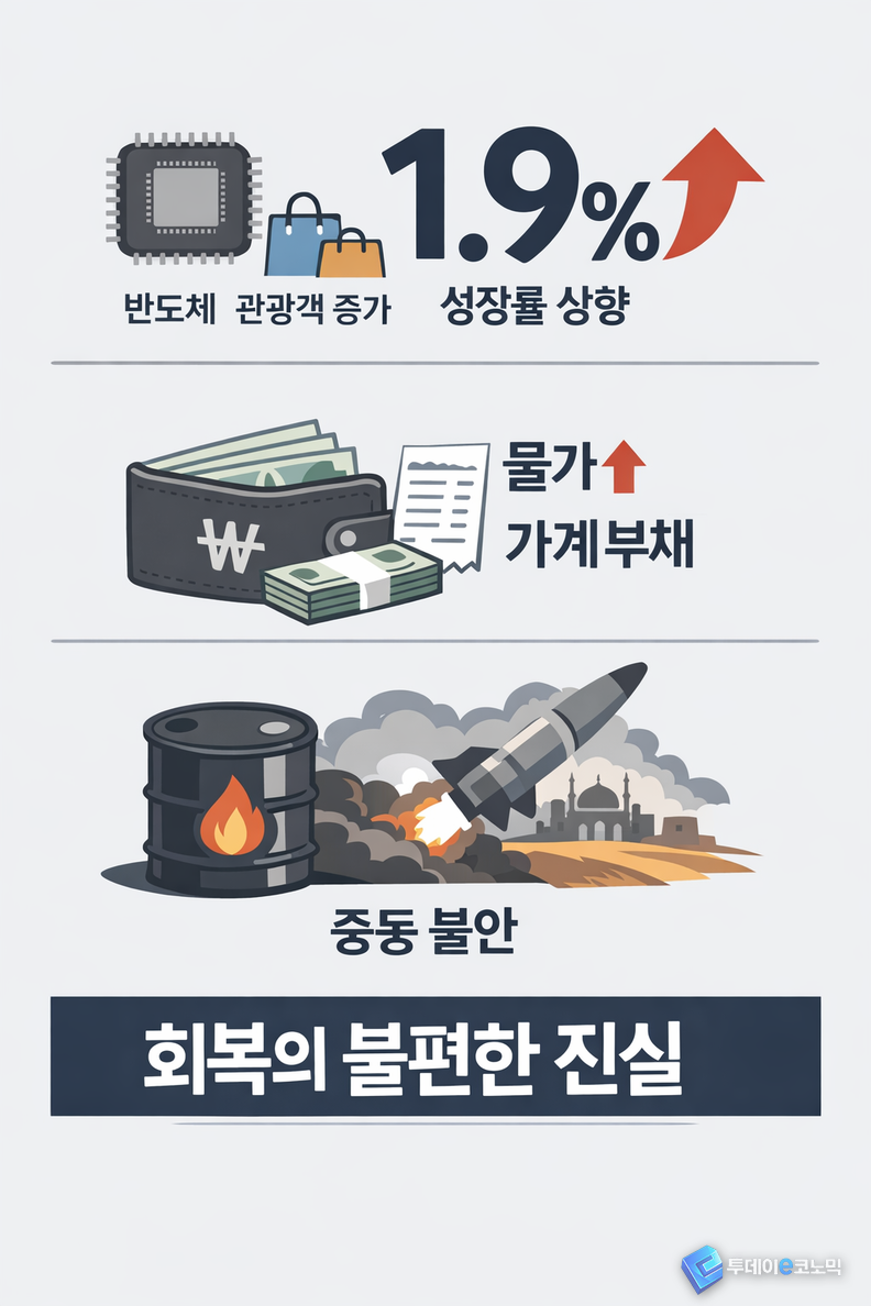 반도체 슈퍼사이클, 외국인 관광 회복, 성장률 상향. 나란히 놓으면 꽤 그럴듯한 그림이다. 근데 이 회복이 얼마나 넓게 퍼지고 있느냐는 다른 이야기다.
