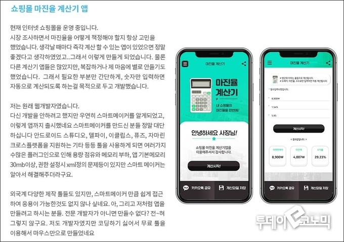 국내 노코드로 앱을 만드는 기업으로는 소프트파워의 스마트메이커가 있다. 은퇴 후 지역아동센터 학습도우미 활동에 참여하던 한 교사는 수능영어평가 문제를 풀이하는 앱을 만들어 원스토어에 무료로 제공했다. 그는 "직접 개발한 앱만 50개가 넘는다. 은퇴 후 앱 만드는 재미에 시간 가는 줄 모른다"는 후기를 남겼다. 인터넷 쇼핑몰을 운영하는 한 사장은 마진율을 책정하는 데 어려움을 겪다 직접 마진율 계산기 앱을 만들었다. 그는 "저도 개발자였지만 코딩하기 싫어서 무료 툴을 이용해서 마우스만으로 만들었다"고 말했다.