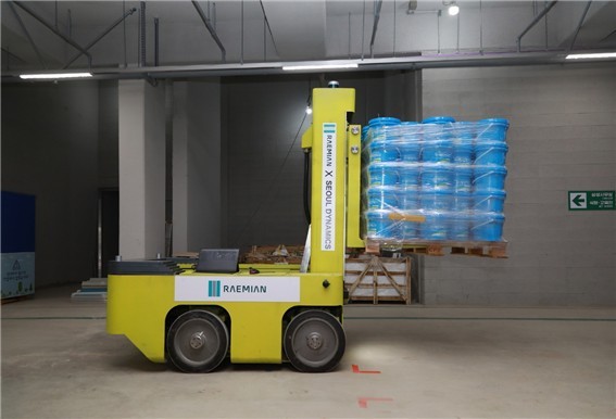 자율주행 지게차와 자재 이동 로봇은 특히 야간 작업에 투입돼 주간 공정을 방해하지 않고 자재를 자동 운반한다. 지게차가 팔레트를 인식해 아파트 지하 공간까지 옮기면, 자재 이동 로봇이 이를 실어 직접 엘리베이터를 호출하고 탑승해 각 호실까지 자재를 배송하는 방식이다.