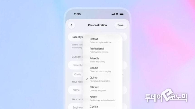 사용자는 챗GPT의 대화 스타일도 더욱 정교하게 선택할 수 있다. 기존 기본·친근·효율적 말투에