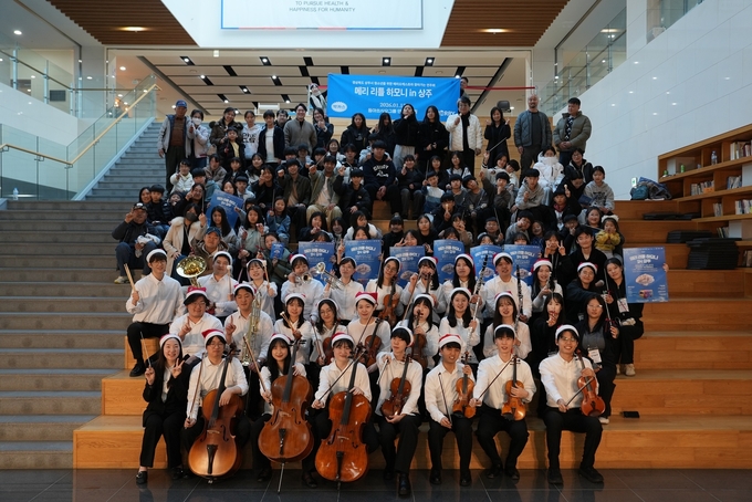 동아제약은 19일 찾아가는 오케스트라 ‘메리 리틀 하모니’ 공연을 경상북도 상주시에서 개최했다고 밝혔다. 공연은 지난 17일 상주시에 위치한 동아쏘시오그룹 인재개발원 로비에서 열렸다.