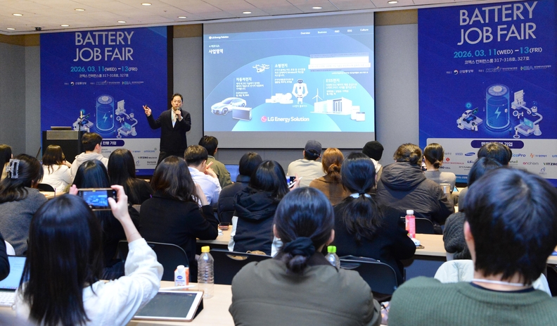 LG에너지솔루션은 최근 열린 ‘배터리 잡페어 2026’에서 이틀 동안 약 400여 명의 취업 준비생이 기업 설명회에 참석하고 약 100여 명이 현직자 멘토링 프로그램에 참여하는 등 높은 관심 속에 행사가 진행됐다고 밝혔다.