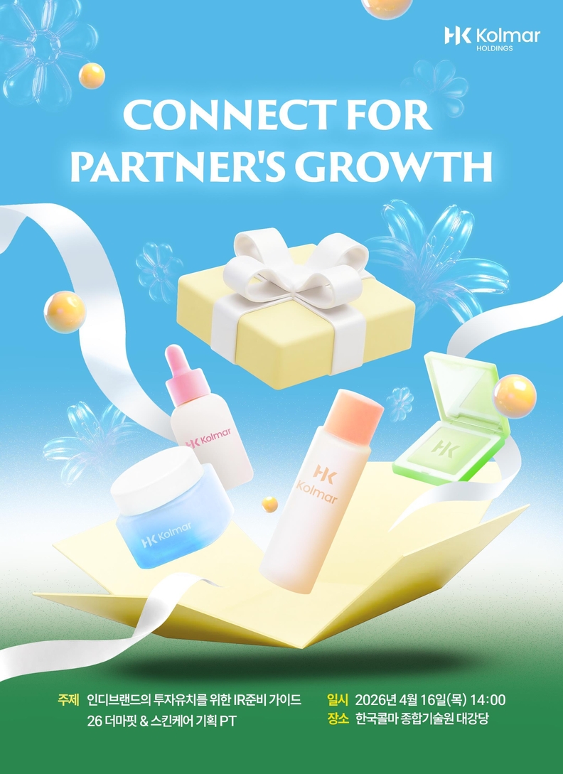 콜마홀딩스 관계자는 “초기 창업 기업이 가장 어려움을 겪는 투자 유치 과정을 중심으로 실질적인 도움을 제공하고자 한다”며 “앞으로도 K뷰티 생태계 전반의 경쟁력을 높이기 위한 동반성장 프로그램을 지속 확대할 계획”이라고 밝혔다.