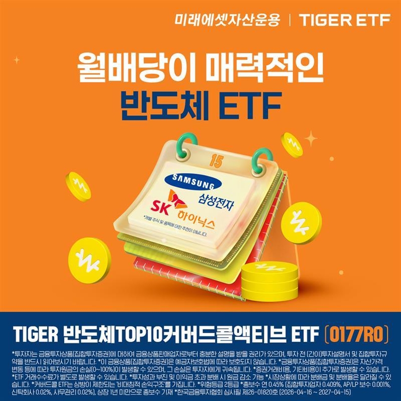 미래에셋자산운용은 21일 ‘TIGER 반도체TOP10커버드콜액티브 ETF’를 신규 상장했다고 밝혔다. 이 상품은 국내 주식 개별 종목 옵션을 활용한 첫 반도체 커버드콜 ETF로, 반도체 산업의 상승 잠재력과 월 단위 분배금을 동시에 노리는 구조로 설계됐다.