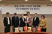 투데이e코노믹 = 이혜진 기자 | 농심이 전주국제영화제와 손잡고 ‘신라면’을 소재로 한 단편영화를 선보이며 K-푸드와 K-콘텐츠 간 협업을 확대한다. 브랜드 40주년을 맞아 식품과 문화예술을 결합한 새로운 마케팅 시도라는 점에서 주목된다. 농심은 지난 21일 서울 동작구 본사에서 전주국제영화제 조직위원회와 ‘신라면 40주년 기념 영화 상영 협약’을 체결했다고 밝혔다. 이번 협약을 통해 농심은 신라면을 주제로 제작에 참여한 단편영화 2편을 영화제 기간 관객들에게 공개한다. 상영 작품은 오세연 감독의 라면이 뿔기 전에와 김태엽 감독의 라면이 떨어지면이다. 두 작품은 오랜 시간 일상 속에서 함께해온 신라면을 매개로 사람들의 감정과 기억을 풀어낸 것이 특징이다. 상영은 5월 2일과 3일 CGV 전주고사점, 5일 메가박스 전주객사점에서 총 3회 진행된다. 농심은 영화제 후원도 이어가고 있다. 2024년부터 시작한 협업을 올해까지 3년째 지속하며, 한국 경쟁 부문 감독 가운데 성장 가능성이 높은 창작자를 선정해 ‘농심신라면상’을 시상한다. 신라면이 글로벌 브랜드로 성장한 것처럼 신진 감독들의 세계 진출을 응원하겠다는 취지다. 영화제 현장에서는 관람객 체험형 프로그램도